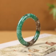 独山玉三彩天蓝飘雪花圆条手镯圆满福镯